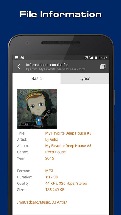 ▣ پشتیبانی از CUE Sheet ▣ دارا بودن اکولایزر 8 بانده ▣ تشخیص خودکار دیتا انکودینگ از تگها ▣ پشتیبانی از آلبوم آرتها ▣ دارا بودن File Manager داخلی و امکان پخش ترانه ها از داخل آن ▣ امکان کنترل پخش از نوار نوتیفیکیشنها (در اندروید 30 به بالا) ▣ امکان کنترل پخش با دکمه های هدست ▣ توانایی گروهبندی فایلها بر اساس template ▣ امکان مرتبسازی فایلها براساس Template و یا بصورت دستی ▣ امکان جستجو در بین فایلها با استفاده از فیلترهای مختلف ▣ امکان مدیریت و حذف مستقیم ترانه ها از داخل اپلیکیشن ▣ توانایی پخش بر اساس پوشههای دلخواه ▣ توانایی اضافه کردن تمامی فایلهای صوتی موجود در SDcard ▣ توانایی پخش ترانه ها از داخل سایر برنامه های File Manager ▣ یکپارچگی با لاک اسکرین (اندروید 4.0 به بالا) ▣ دارا بودن ویجت صفحه خانگی ▣ دارا بودن ویجت لاک اسکرین (اندروید 4.2 به بالا) ▣ توانایی پخش فرمتهای Supported formats: *.ape; *.mpga; *.mp3; *.wav; *.ogg; *.umx; *.mod; *.mo3; *.it; *.s3m; *.mtm; *.xm; *.aac; *.flac; *.mp4; *.m4a; *.m4b; *.mpc; *.wv; *.opus; *.dsf; *.dff; *.tta